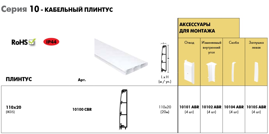 | 10107 ABR | 10107 ABR Адаптер для плинтуса 110х20 | 376.27 | 367.41 | 357.56 | |