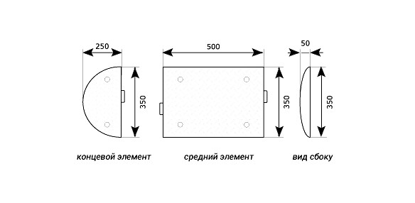 Анкеры: 2 Материал: резина Описание Лежачий полицейский ИДН-350(Концевая часть)Основное назначение Лежачий полицейский ИДН-350(Концевая часть) – является составляющим элементом сборки лежачего полицейского, который принудительно снижает скорость автомобилей с целью обеспечения безопасности движения в местах с ограничением скорости. Лежачие полицейские используют перед детскими и образовательными учреждениям, местами массового отдыха, стадионами, вокзалами, на транспортно-пешеходных и пешеходно-транспортных магистральных улицах районного и местного значения, на парковых дорогах и проездах, перед въездами на опасные участки дорог, нерегулируемые перекрестки и территорию обозначенную знаком 5.21 «Жилая зона». В зоне действия дорожного знака 1.23 «Дети» лежачие полицейские должны чередоваться через каждые 50 метров. Лежачие полицейские запрещено устанавливать на дорогах федерального значения, мостах, путепроводах и эстакадах, в транспортных тоннелях и проездах под мостами, на магистральных дорогах скоростного движения и региональных трассах с 4-мя и более полосами движения; на расстоянии менее 100 метров от железнодорожного пути; на подъездах к больницам, станциям скорой помощи, пожарным станциям, а также в районе стоянок и гаражей для аварийных служб. В зимний период лежачие полицейские рекомендуется демонтировать для эффективной работы снегоуборочной техники и для избегания порчи при механизированной уборке.