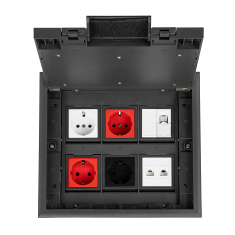 Главная / Каталог / Колонны и люки напольные / Люки для розеток в пол и в стол / Люк для розеток в полу под покрытие / Люк наполный Datarex / DR-PRO-015111 Лючок напольный, 12 модулей, горизо