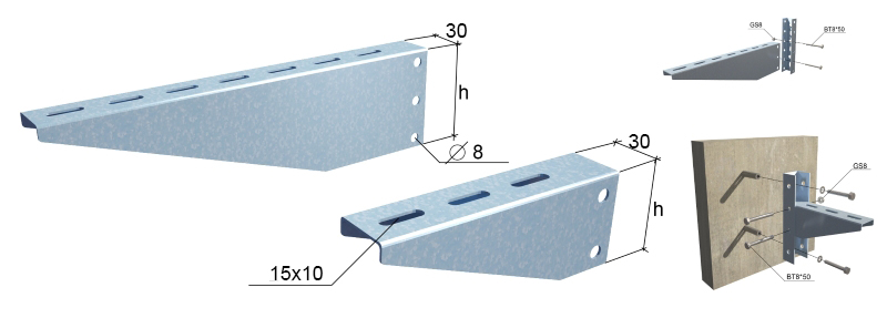 Главная / Каталог / Кабельный лоток металлический / Монтажные системы КМ для кабельных лотков подвесы, консоли / Консоли для лотка / Консоль сборная / KBO100 Консоль 100мм кабельный лоток код LO0810 ар