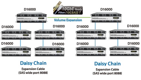| Дисковая полка DAS 19'' 3U, 16 x 3.5''SATAIII/SAS6G Сетевое хранилище THECUS D16000 Thecus D16000 представляет собой устройство, предназначенное для реализации расширения архива Thecus N16000. Это экономически выгодное решение за счет отсутствия процессора и оперативной памяти . Подключается посредством кабеля SAS на скорости 6Гбит/с. Необходима установка платы LSI SAS 9200-8e SAS/SATA (опционально) в головное устройство.