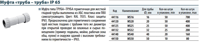 Главная / Каталог / Трубы гофрированные, жесткие, двустенные для электропроводки не поддерживающие горение / Муфты для Труб / Муфта "труба-труба" IP65 / 44116 MS16 Муфта "труба-труба" D16мм цвет серый (1
