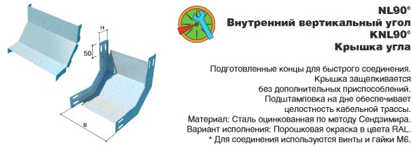 Угол внутренний вертикальный 90° 50х500 для кабельного лотка код LO0273 артикул NL90*50*500 вес 2,03 кг/шт. цена за 1 шт. |