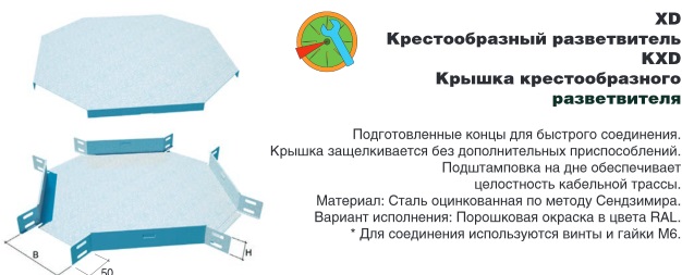 Главная / Каталог / Кабельный лоток металлический / Фасонные изделия кабельного лотка - углы, заглушки / Х-разветвитель