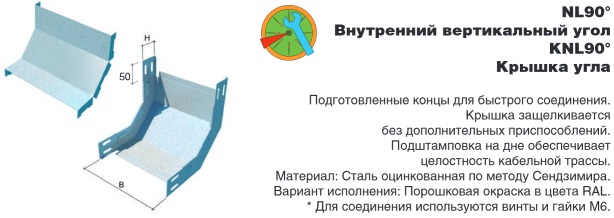 Угол внутренний вертикальный 90° 50х500 для кабельного лотка код LO0273 артикул NL90*50*500 вес 2,03 кг/шт. цена за 1 шт. |