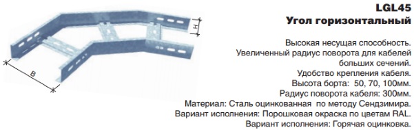 Угол горизонтальный 45' 100х600 для кабельного лестничного лотка код LO2203 артикул LGL45*100*600*1.5 вес 4,63 цена за шт. |