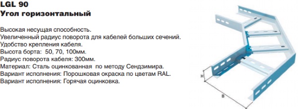 Угол горизонтальный 90' 70х500 для кабельного лестничного лотка код LO4463 артикул LGL90*70*500*1.2 вес 4,26 цена за шт. |