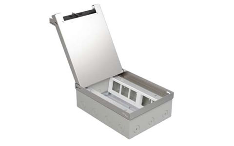 Главная / Каталог / Колонны и люки напольные / Люки для розеток в пол и в стол / Люк для розеток в полу под покрытие / Люки для высоконагруженных поверхностей нерж. сталь под напольное покрытие Экопласт / 70210 LUK/10M Люк в пол на 10 постов (45х45мм) ст