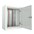Стальной электрический щит IP31 с оцинкованной монтажной панелью, на которую установлена медная заземляющая полоса. Корпус стандартной комплектации: IP-31. Ящик выполнен из холодно-катанного тонколистового стального листа толщиной 1 мм. Конструкция ящика цельносварная, задняя стенка имеет четыре отверстия d=8 мм для крепления к стене, передняя дверь оснащена точечным замком. В нижней части шкафа имеются круглые отверстия d=32 мм для заведения кабеля заземления. Медные шины 2 шт располагаются вертикально, соединены медной перемычкой, на оцинкованную монтажную панель крепятся через изоляторы SM-25, медная шина укомплектована винтами М6х12 и гайками с фланцем с насечкой М6.