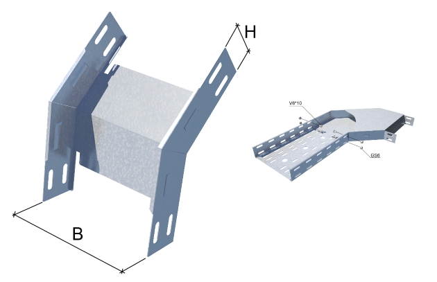 Главная / Каталог / Кабельный лоток металлический / Фасонные изделия кабельного лотка - углы, заглушки / Угол внешний вертикальный 45° / Угол внешний вертикальный 45° 80х100 для кабельног