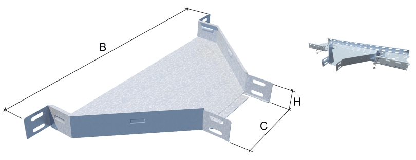 Главная / Каталог / Кабельный лоток металлический / Фасонные изделия кабельного лотка - углы, заглушки / Т-ответвитель / Т-ответвитель 100х300 для кабельного лотка код LO2