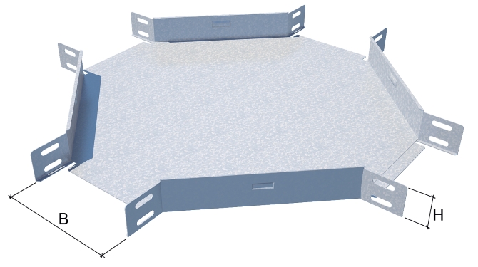 Главная / Каталог / Кабельный лоток металлический / Фасонные изделия кабельного лотка - углы, заглушки / Х-разветвитель / Х-разветвитель 50х50 для кабельного лотка код LO01