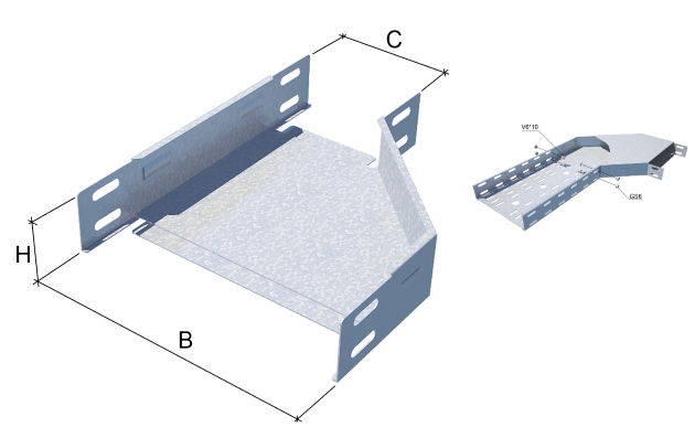 Главная / Каталог / Кабельный лоток металлический / Фасонные изделия кабельного лотка - углы, заглушки / Переходник / Переходник 50х400-500 для кабельного лотка код LO0