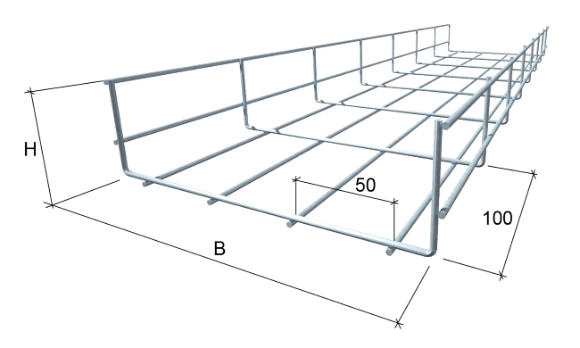 Главная / Каталог / Кабельный лоток металлический / Проволочный лоток КМ / Проволочные лотки борт 100мм ШхВхД / Проволочный лоток 500х100х3000 мм кабельный лоток