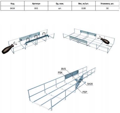 Безвинтовой соединитель для проволочного кабельного лотка код LO0434 артикул BVS вес 0,08кг/м, цена за 1шт
