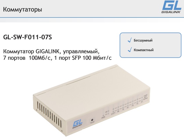 GL-SW-F011-07S Коммутатор управляемый 7 портов 100Мб/с 1 порт SFP 100 Мбит/с GIGALINK