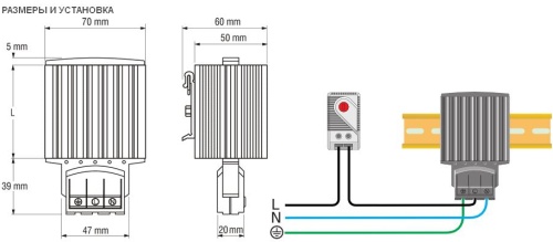 Шкафы всепогодные напольные серии ШТВ-1 предназначены для размещения автономно функционирующего активного и пассивного телекоммуникационного оборудования, обеспечивает защиту от воздействия окружающей среды и несанкционированного доступа. Уровень защиты IP65 (при использовании вентиляции IP54). Корпус шкафа имеет металлическую сварную конструкцию, внутри покрыт неподдерживающим горения термоизоляционным материалом. Дверь шкафа подготовлена для установки вентиляторов моделей МВ-400-2 или МВ-400-2-3, фильтра МВ-Ф, а также имеется предустановленная DIN-рейка для установки нагревателей/термореле/гигростата/датчиков. В комплект шкафа входят задняя оцинкованная панель и комплект вертикальных юнитовых направляющих 19”. Шкаф крепится на стену при помощи 4-х уголков (анкеры входят в комплект поставки), при необходимости можно применить крепление на столб (не входит в комплект поставки). В основании шкафа предусмотрена съемная заглушка для ввода кабеля. Шкаф поставляется без нагревательного элемента(от 50-150W ) и блока термоконтроля и блока термоконтроля и блока вентиляторов. Дополнительно вы можете преобрести в данный шкаф нагревательный элемент и блок управления термоконтроля и блока вентиляторов. Технические характеристики нагревательного элемента серии HG 140 Напряжение эксплуатации - 120-250V AC/DC Нагревательный элемент - позистор (PTC) - саморегулирующийся, с ограничением температуры Радиатор - алюминиевый профиль, анодированный Подключение три нажимных защелки для:многожильный провод 0.5-1.5мм2 (с опрессовкой наконце провода); одножильный провод 0.5-2.5мм2 Крепление зажим для шины 35мм, согл. DIN EN50022 Монтаж вертикальный Условия эксплуатации/хранения от -45°С до +70°С Степень защиты IP20 / I (защитный провод) Схема подключения термоблока ( HG14008 + механический терморегулятор) ![]() |