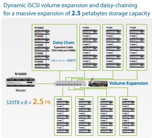 | Дисковая полка DAS 19'' 3U, 16 x 3.5''SATAIII/SAS6G Сетевое хранилище THECUS D16000 Thecus D16000 представляет собой устройство, предназначенное для реализации расширения архива Thecus N16000. Это экономически выгодное решение за счет отсутствия процессора и оперативной памяти . Подключается посредством кабеля SAS на скорости 6Гбит/с. Необходима установка платы LSI SAS 9200-8e SAS/SATA (опционально) в головное устройство.