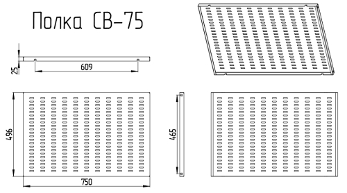 СВ-75У Полка перфорированная грузоподъёмностью 100 кг., глубина 750 мм